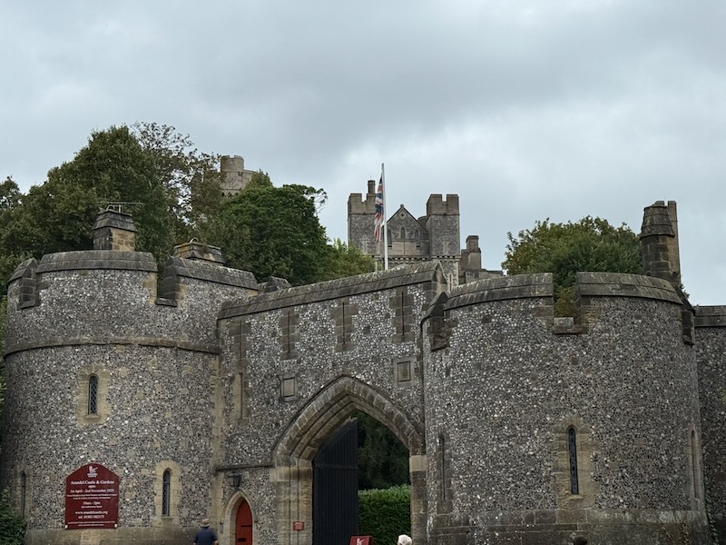 Our Blog - August 2025 - England trip - Arundel CastleWe ended up going to the Arundel Castle on a separate day than our visit to the rest of the town since dogs are not allowed inside the castle. Sometimes, like at Igtham Mote, we can take turns going inside since it isn't going to take that much time to go through a small house. But since the castle is huge and we wanted to take our time, we had to plan a 2nd trip to Arundel. It was originally built in the 11th century but then damaged in the English Civil War and restored in the 18th and early 19th centuries. As with many 11th century castles, it started as a motte-and-bailey castle with a keep, that we will go through as part of the tour. The main entrance is a little bit away from the castle and looks like it is built in flint stone, the same as some parts of the castle. There are definitely parts of the castle that look really old, while others look relatively new. There are also multiple gates, including the main entrance (1st picture) and another one, called the High Street Lodge, on the other side of the property. During the English Civil War (1642-1651), the Earl of Arundel remaining loyal to the King and so the Estate was grabbed by the Parliamentarians. His son reconciled with the Parliamentarians after the Earls death and agreed to pay a fine to get the family estate back. However, that left them without enough money to repair the castle, and it stopped being the family home and fell into disrepair. In 1777, the castle became the family's main seat again and extensive rebuilding works were undertaken.