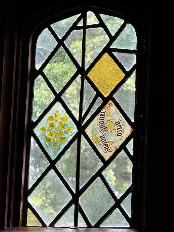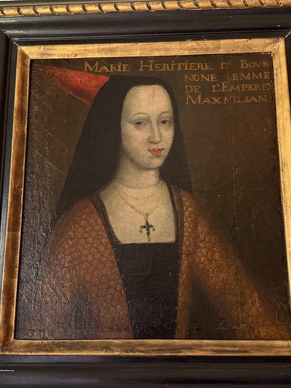 The painting is of Marie Heritiere de Bourgogne, the wife of Emperor Maximilian in the mid-1400s. The window is not original but was reused from other houses from the time period.