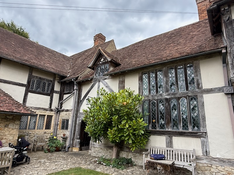 Our Blog - August 2025 - England trip - StoneacreThe house called Stoneacre was built in 1480 by the Ellys family in a typical design style. They are half-timbered using oak timber framing and filling in the spaces with a woven lattice of wooden strips that are covered with a combination of mud and clay. There are also 2 gardens and a wooded valley. There was a renovation in the mid-16th century when an upper floor was added to add extra bedrooms. The Ellys family kept the house until the early 18th century when they were forced to sell due to financial difficulties. The house was not kept up and it fell into disrepair. It was rescued in 1920 when it was bought and restored. The first 2 pictures are from the front while the 3rd and 4th are from the back courtyard.