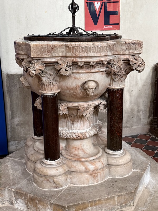 I think the baptismal font was really nice, although I can't tell you what year it dates from. The information panel did say that the lids were added around the 13th century to protect the baptismal water from dust, bugs, and anything else that would pollute the water.