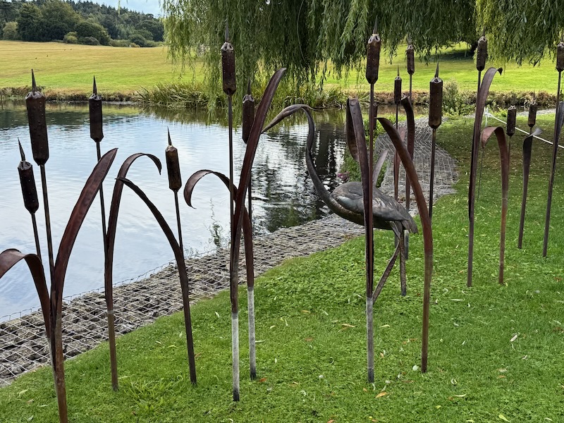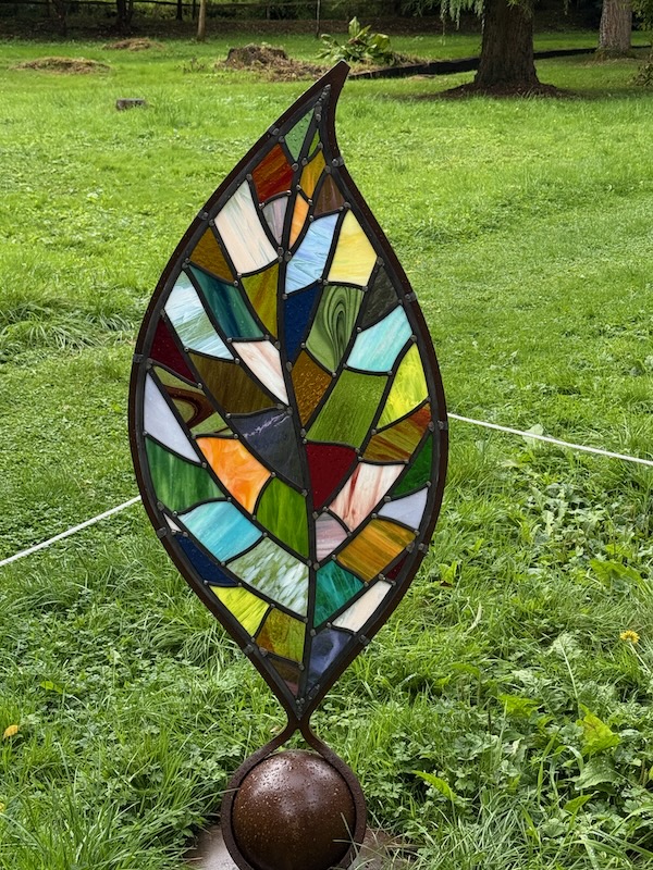 There is a special exhibit here called the Sculpture Trail for a couple months and we just happened to visit during that time. I grabbed pictures of 2: Heron with Bulrush (made from recycled copper and steel) and Multicolored Leaf (made of Steel and leaded glass).