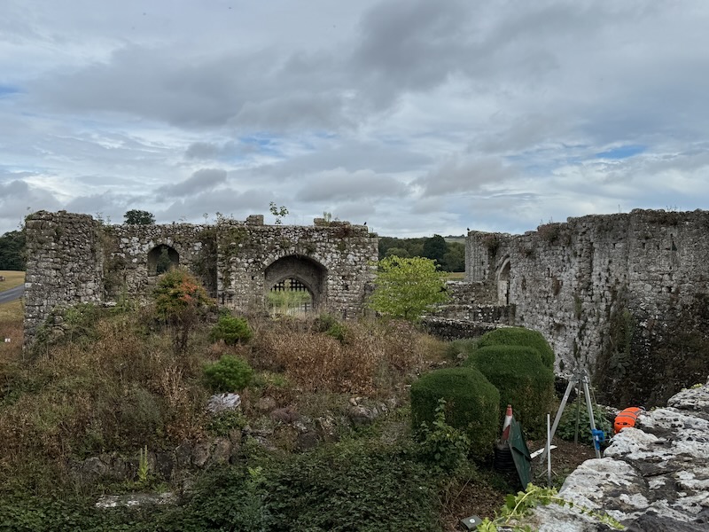 These are the remains of the barbican and a mill that was built by King Edward I when it was bought by his wife. The gatehouse, which has been restored, also dates from that period.