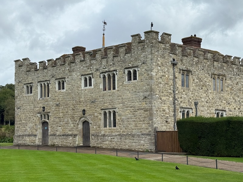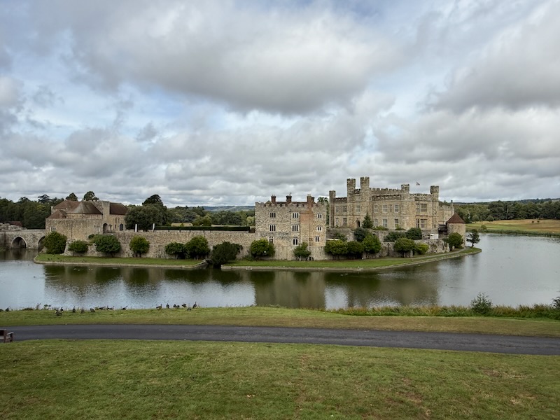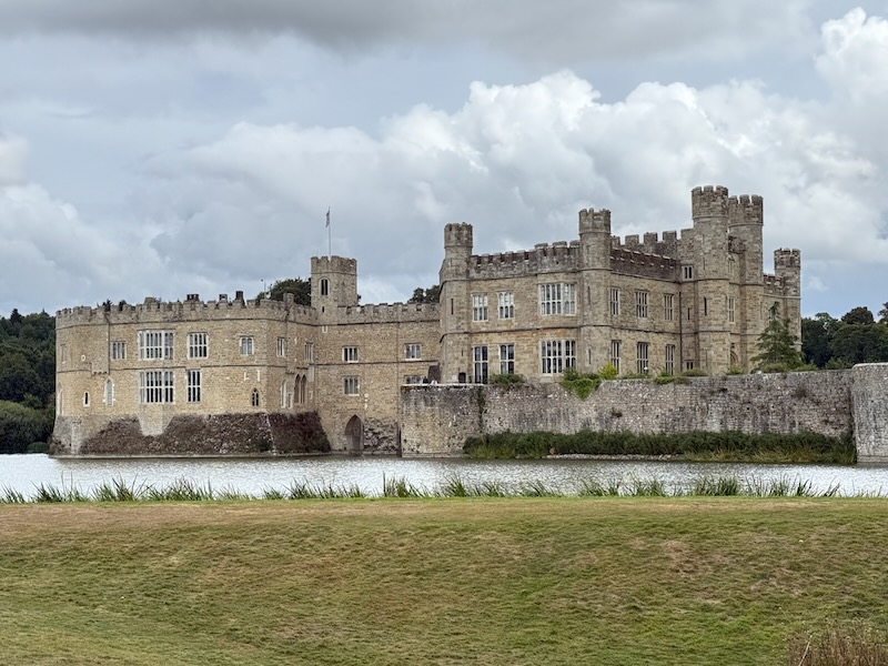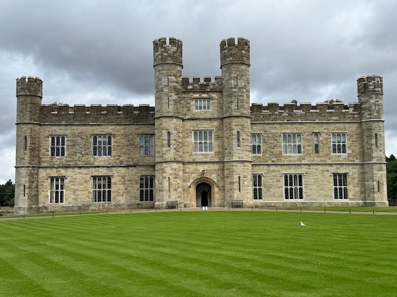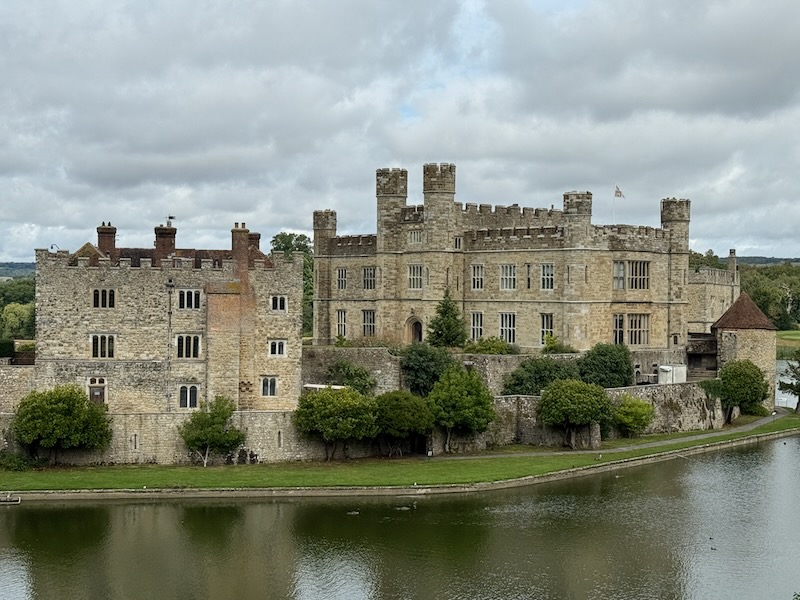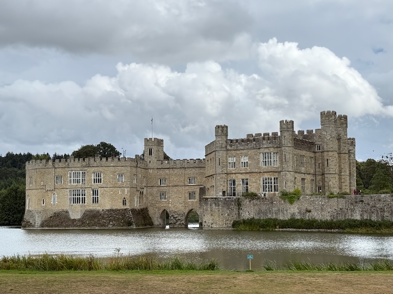 Our Blog - August 2025 - England trip - Leeds CastleAnother castle, this time Leeds Castle, which has an interesting history. A castle has been on this site since 857, when it was a wooden structure on 2 islands in the middle of a river. It was rebuilt in stone in 1119. In 1278, it was bought by Eleanor of Castile, the wife of King Edward I. Edward really liked it here and he enhanced the defenses with a barbican and rerouted the Len River to bypass the castle, making a lake with the castle in the middle. It is odd that they would have a barbican with a portcullis, since the castle was a country estate. A little controversy occurred in 1321. The constable of the castle was away and left his wife in charge. King Edward's wife, Isabella of France, stopped by the castle but was denied entry. When we tried to force her way in, archers were instructed to shoot at Isabella and her entourage, killing 6 of them. This was, in fact, part of a plan that Edward had come up with to get revenge on a group of people who were plotting against him. He knew that Isabella would be denied access and wanted to cause a "casus belli", or act that justifies a war (this in English history is called the Despenser War). It was then used by the monarchy, including King Henry VIII, who transformed the castle in 1519 for his 1st wife, Catherine of Aragon. It ended up being given to nobleman in 1552 and it passed down through his family for several generations, then got sold a few times. The present castle dates mostly from the early 19th century, when it was remodeled in the Tudor style in 1823. It was then bought in 1924 by an Anglo-American heiress named Lady Baillie, who redecorated the interior to be mostly what is there today. You can see a few bits-and-pieces of the old-style castle here and there.