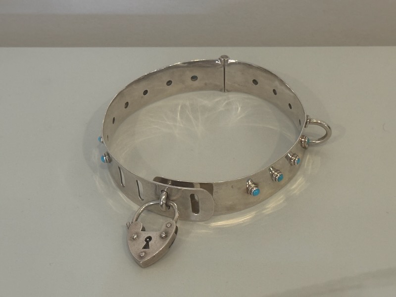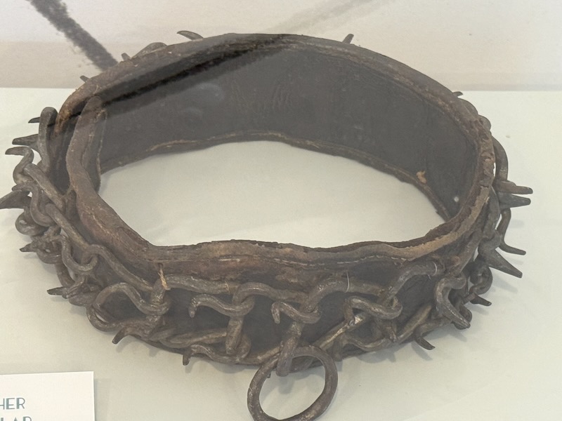They have what is said to be the world's only museum of dog collars, which seemed to only be a collection of about a dozen of them or so. This first one is an iron and leather dog collar from Germany from the 15th/16th century. The 2nd is a Silver English collar from the 20th century.