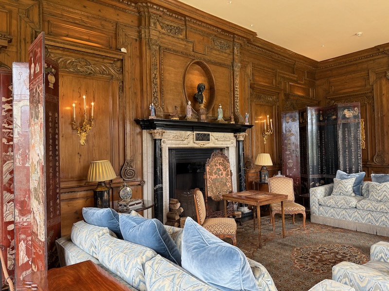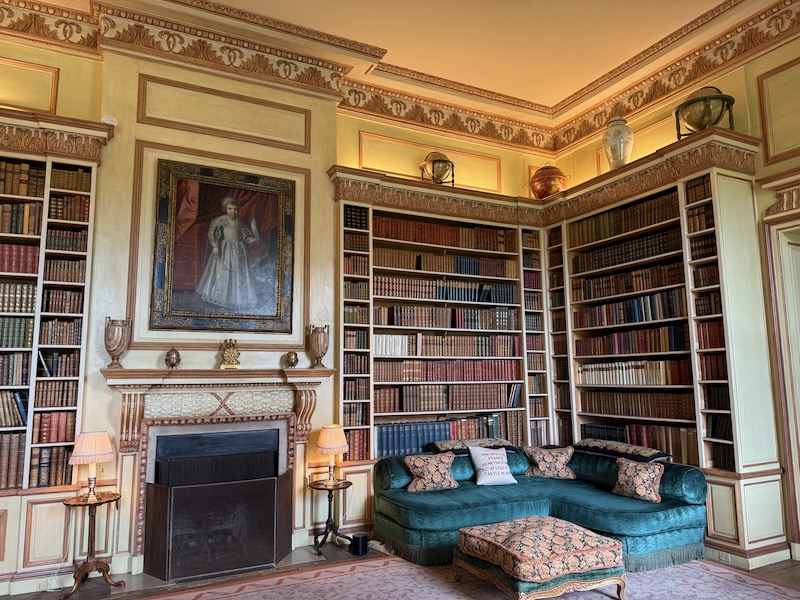 While the outside truly looks like a castle, I had mentioned the interior dates from the 1920s. This room was initially used as a schoolroom for Lady Baillie's daughters, Pauline and Susan. It was then converted to a library in 1938. She had a love of the past and so while it is a mid-20th century interior, there are lots of designs looking back at the 17th and 18th centuries.