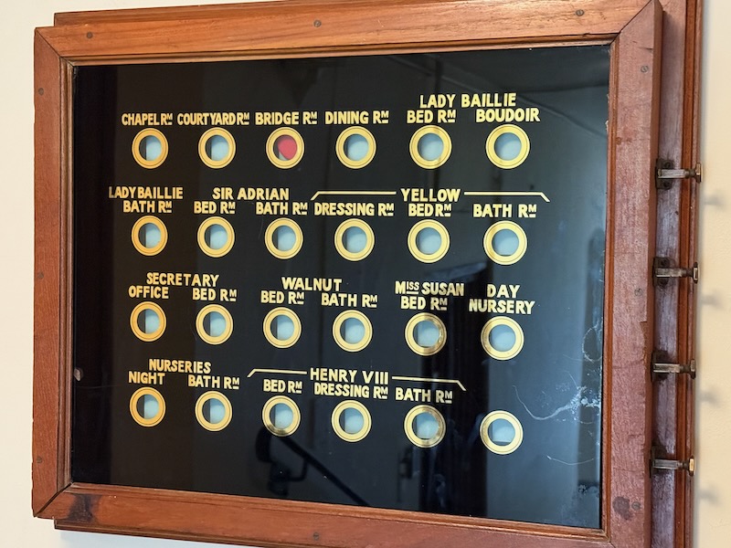 During the renovation done by Lady Baillie, she had all of the modern conveniences (at the time) included, like running water, electricity, and a "servants call box", that would allow the family to "call" their servants from any of their various rooms. The room would be indicated here.