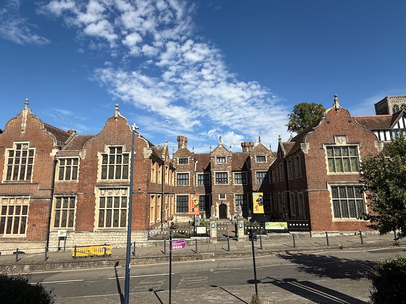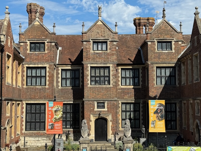 Our Blog - August 2025 - England trip - MaidstoneMaidstone is the largest town in Kent. Saxon charters dating back to 975 show the first recorded instances of the town's name, de maeides stana and maegdan stane, possibly meaning stone of the maidens or stone of the people. The actual town charter was granted in 1549 and ratified in 1619. The coat of arms has a golden lion and a representation of the Medway River. In the 19th century, the fossilized remains of a dinosaur, called an iguanodon, was discovered which can now be seen in the Natural History Museum in London. It was the closest large town to where we stayed during the last 9 days in England. Our first stop was the Maidstone Museum, housed in Chillington Manor, a nice example of domestic architecture from the late Tudor period. The house was built between 1561 and 1577 for local politician. In 1855, the owner left a collection of antique objects to the town, and the town then purchased his house to open a museum to show these objects.