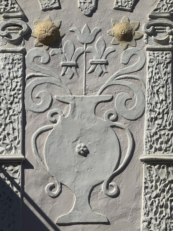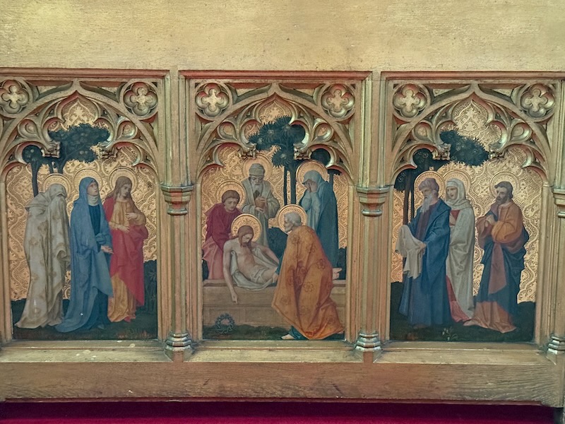 This stained-glass window was made in 1904, called the Canon Joy Window. The altar has an interesting, painted front although I don't have a date for that.