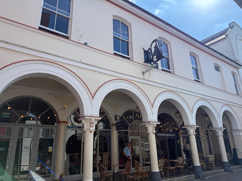 Like most English towns, High Street was the original market/shopping street in town. These covered arches were "new" market buildings that were built in 1825. There were interesting store signs that I assume are newer than the 1800's based on their design but I don't really know.