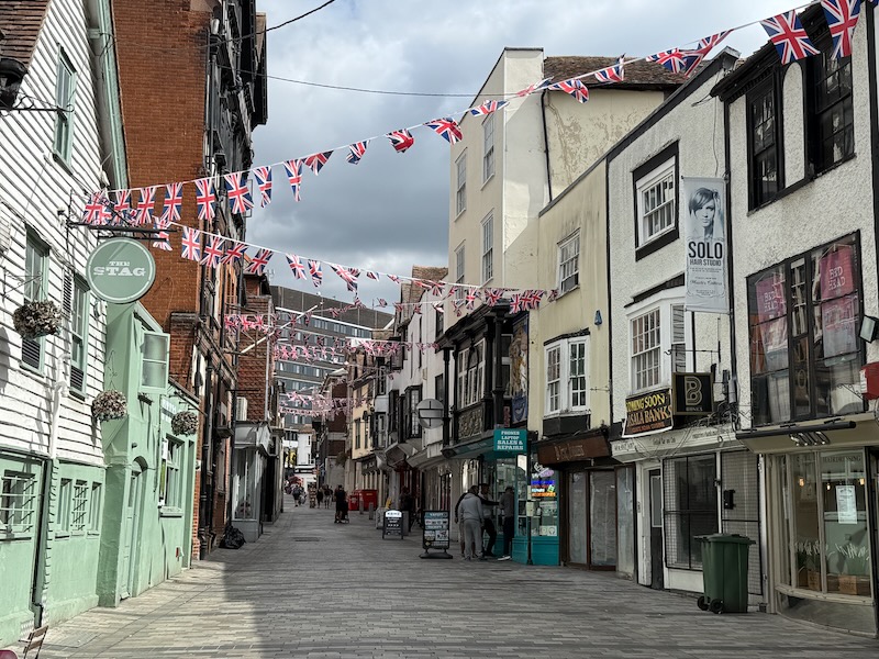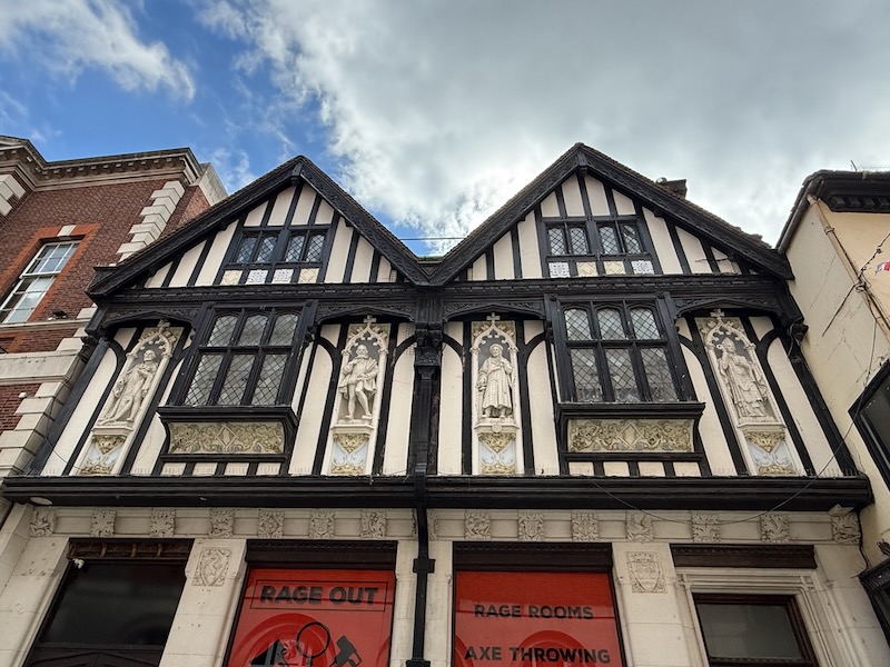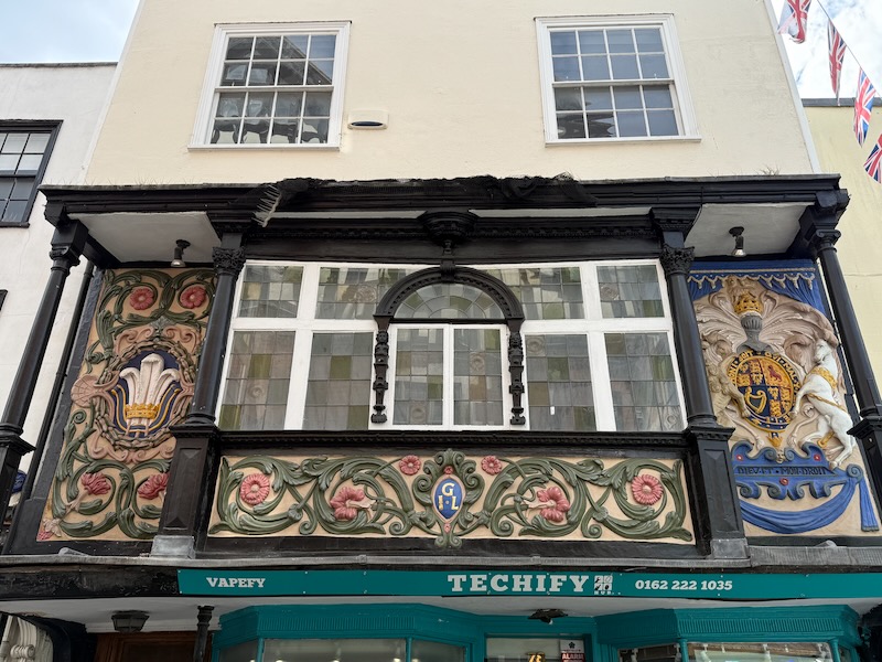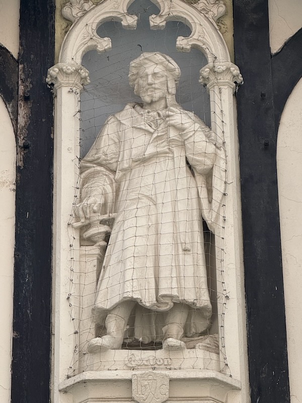 Bank Street is probably the most complete historical street in town with many of the buildings dating from the 15th to 17th centuries, easily recognized by their overhanging upper floors, a feature known as jettying. A couple of the more interesting ones are the flamboyant Queen Anne style shop front (2nd picture) and one with 4 niches across the 1st floor with statues in them.
