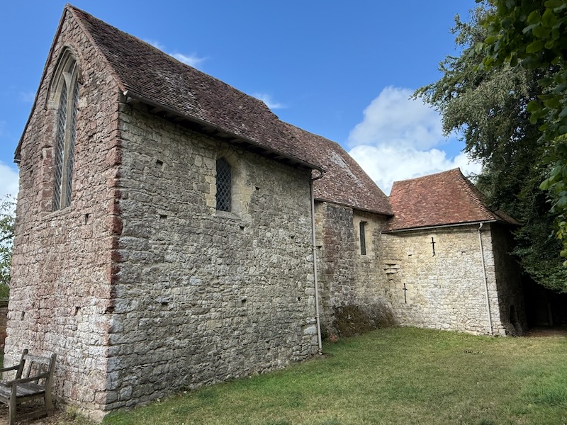Our Blog - August 2025 - England trip - Old Soar ManorThis one was a bit hard to find as it is on this tiny little alleyway with no real parking. It is considered a knight's house and is one of the few remaining dwellings built in the time of King Edward I. Built in 1290, it was built as a fortified manor house for the Culpepper family. In the time of King Edward I, thieves and robbers roamed the countryside and the landowner had to protect themselves. So the house was designed so that it could be defended by the family and their servants. Certain things were specifically designed for defense, like the door at the top of the stairs opens outwards, so that if an attacker got into the house, the door couldn't be pushed in.